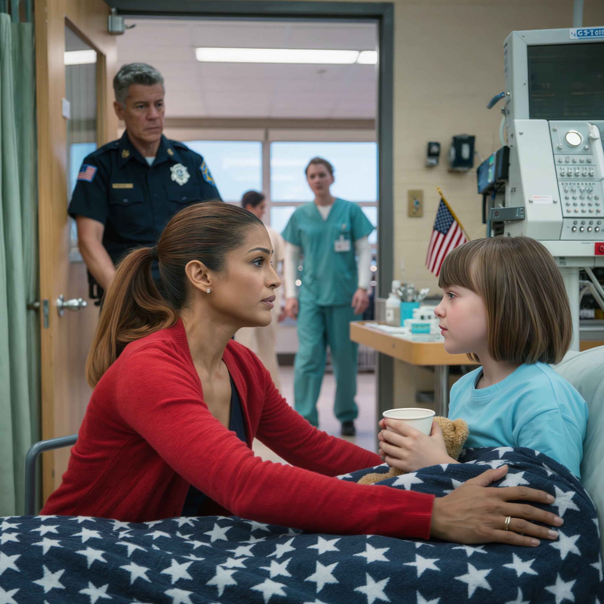 When they finally let me see Lucy, she was sitting up on the bed, clutching a paper cup with both hands like it might disappear.
