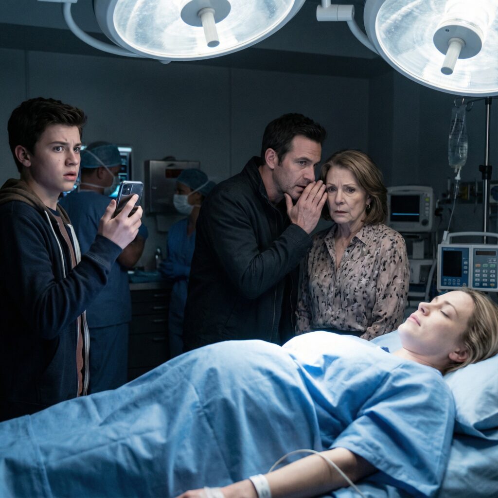 My son, Noah—my fifteen-year-old from my first marriage—had been standing silently near the wall. The nurses had allowed him in briefly before surgery to reassure me. When I lost consciousness, no one asked him to leave. He stood there, frozen, as he heard every word. His hands shook as he pulled out his phone and pressed record.