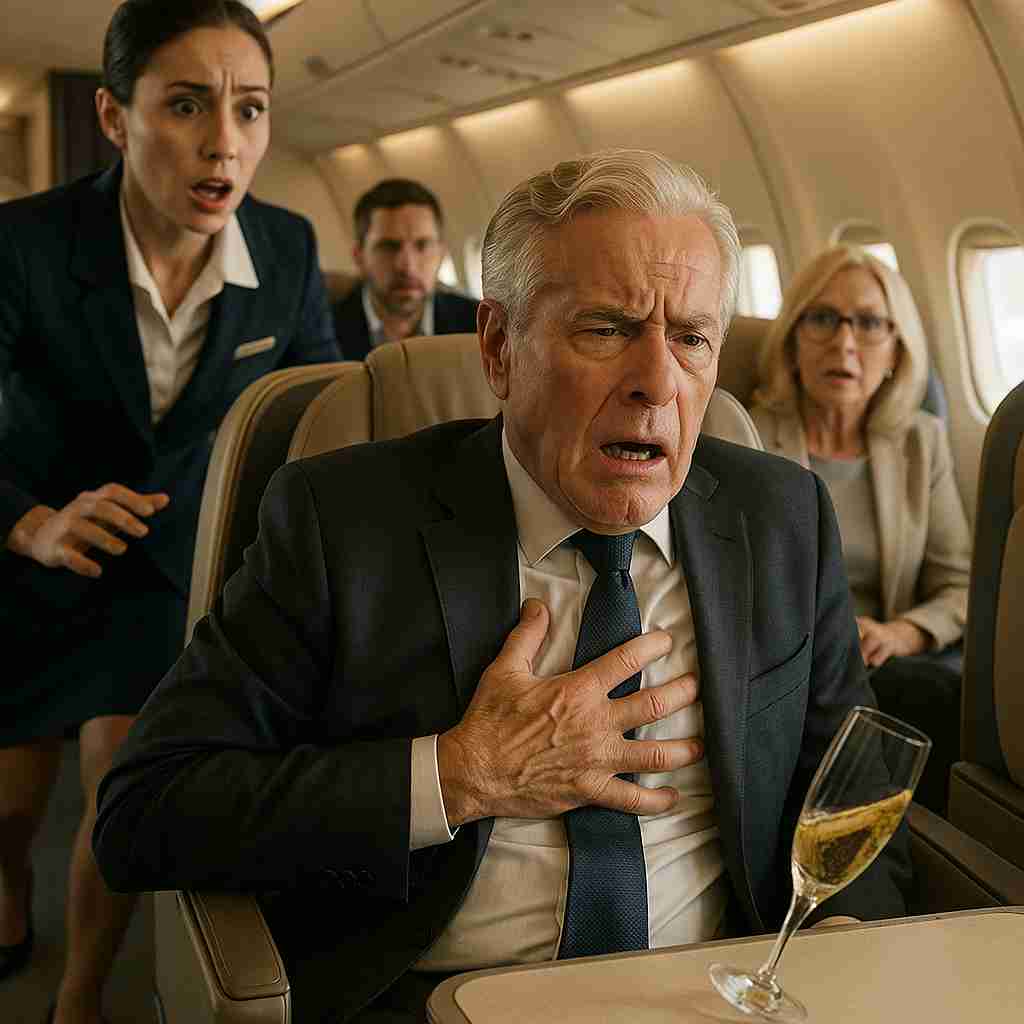 Richard Coleman, a billionaire, suddenly fell in first class and grasped his chest.