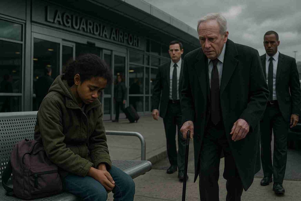 The next morning, Amara sat outside LaGuardia Airport. Her aunt never came. She didn’t have a phone, any money, or nobody to talk to. Her stomach grumbled with hunger for hours. She held on to her backpack tightly and tried not to cry. At that moment, a gleaming black SUV drew up in front of her. Two men in suits got out with Richard Coleman himself. He was pale but still alive and using a cane to lean on.