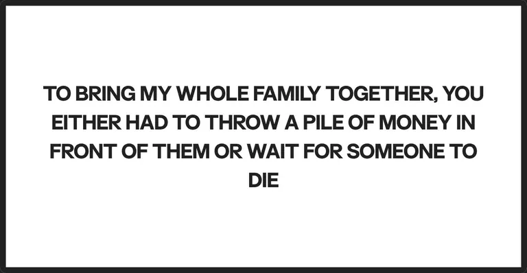 You have to wait for someone to pass away or toss a bunch of cash in front of my entire family to get them all together. Sadly, it was both on that particular day.
