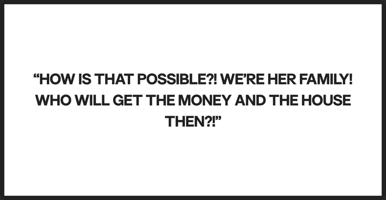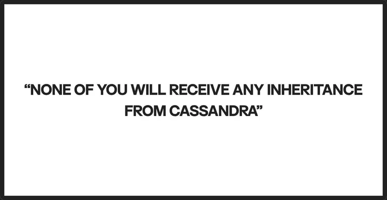In a cold voice, Mr. Johnson declared, “Cassandra will not leave any inheritance to any of you.”