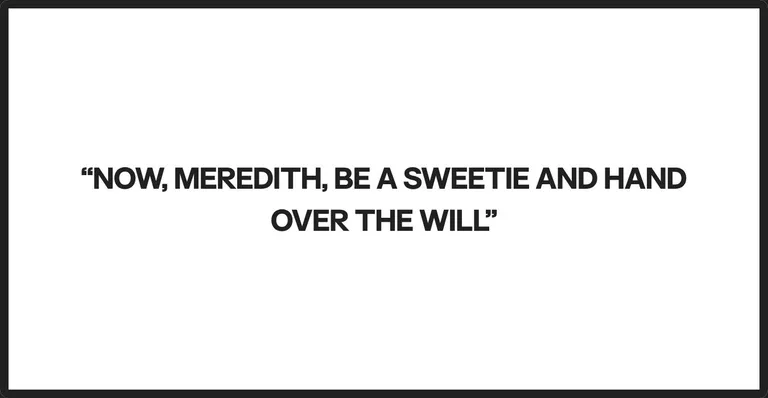 Uncle Jack remarked, seemingly out of nowhere, “so she really decided to leave everything to Meredith.”