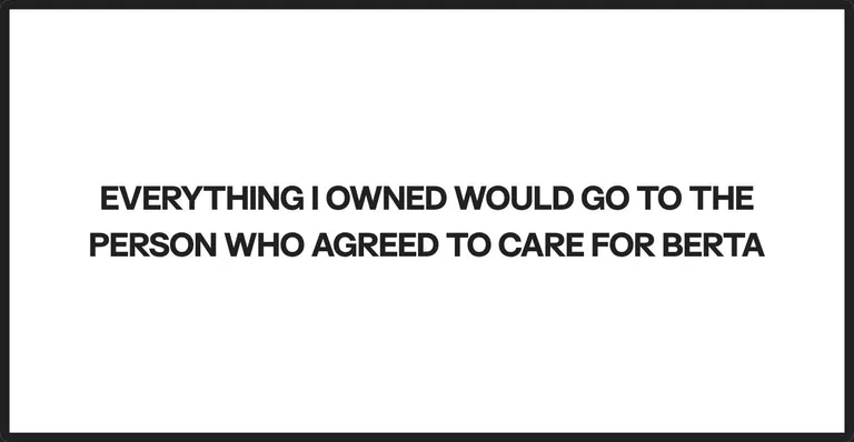 Whoever agreed to take care of Berta would get everything I owned. And Meredith, I have no doubt that you would be that person.
