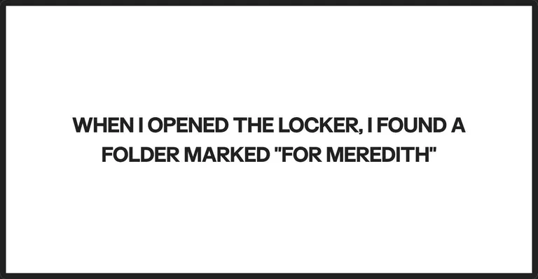 I discovered a folder labeled “For Meredith” when I unlocked the locker. There were some papers and a note in Grandma’s handwriting inside. I took the note out and started reading.