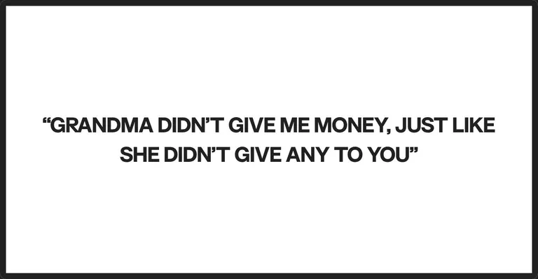 As a result, until that day, my mom, my uncle, aunt, and their kids didn’t talk to Grandma or even bring her up.
