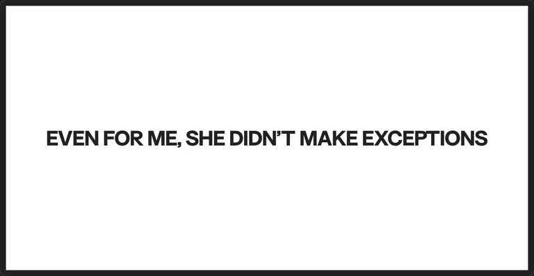 Naturally, I didn’t anticipate anything different. She made no exceptions, not even for me. However, I was grateful for her constant guidance and encouragement.
