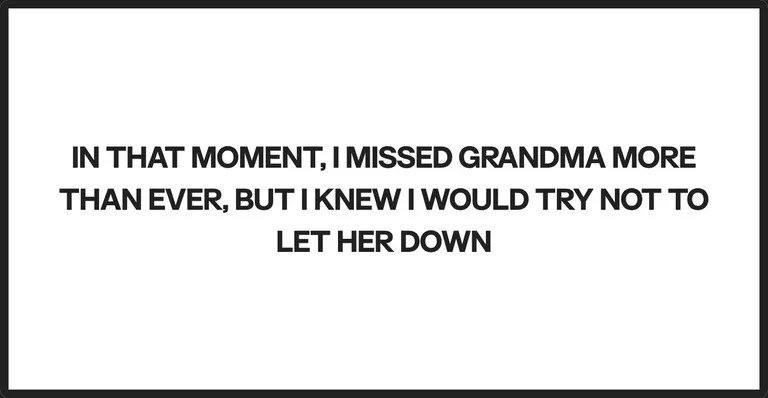 I knew I would try not to disappoint Grandma, even though I missed her more than ever at that precise moment.