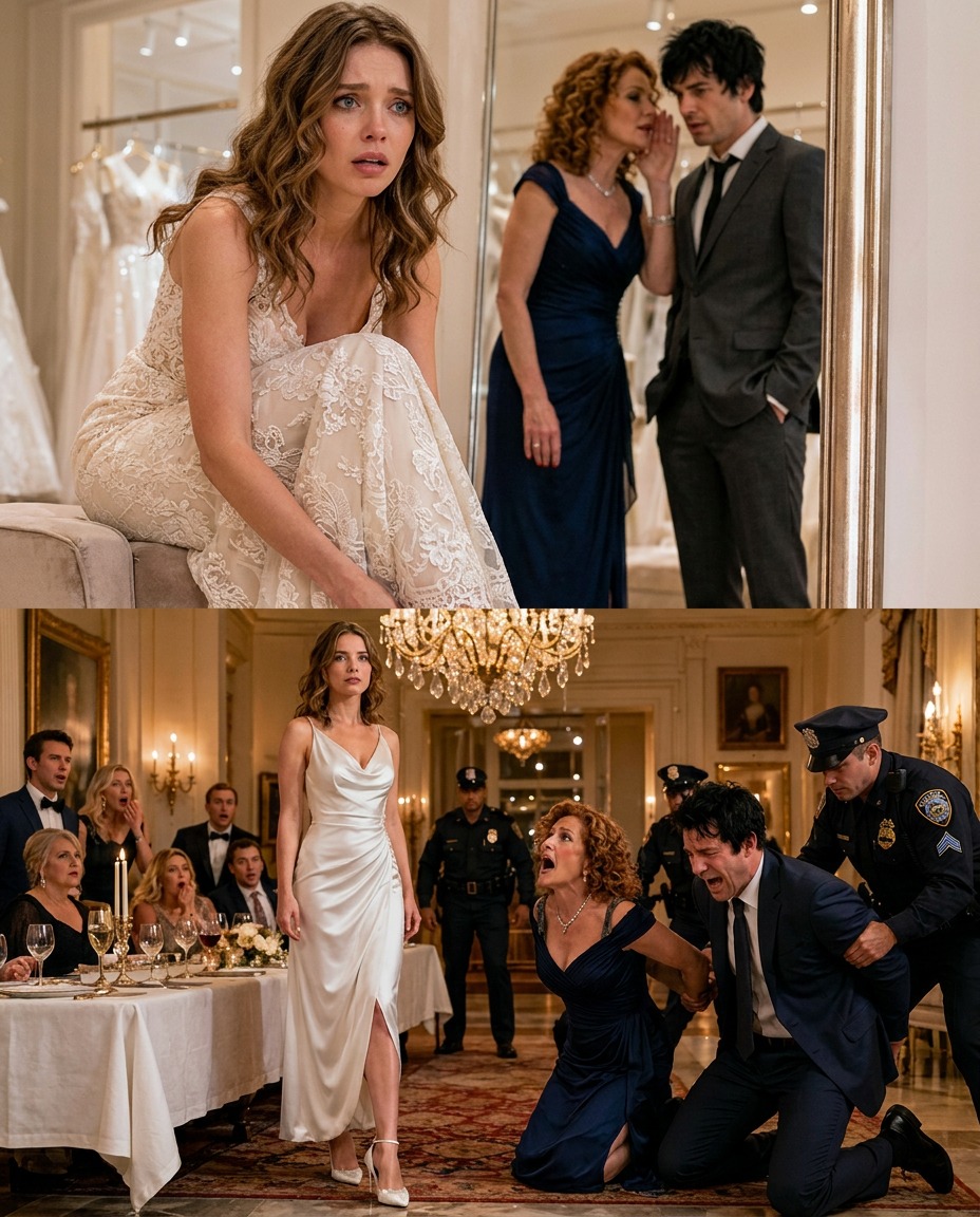 The boutique curtain was only half drawn, pins shimmering along the hem of my dress, when Patricia Vale’s voice slipped through the partition.
