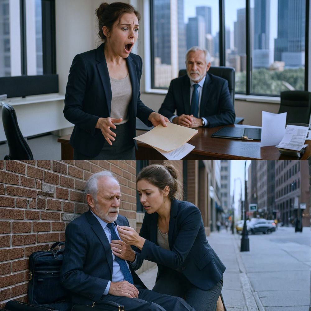 She opened her eyes and looked out the window again. Abruptly, a strange sight caught her attention. An older man across the street suddenly clutched his chest. He fell, his face twisted in pain, and started to slide down the building’s brick wall, falling onto the sidewalk.