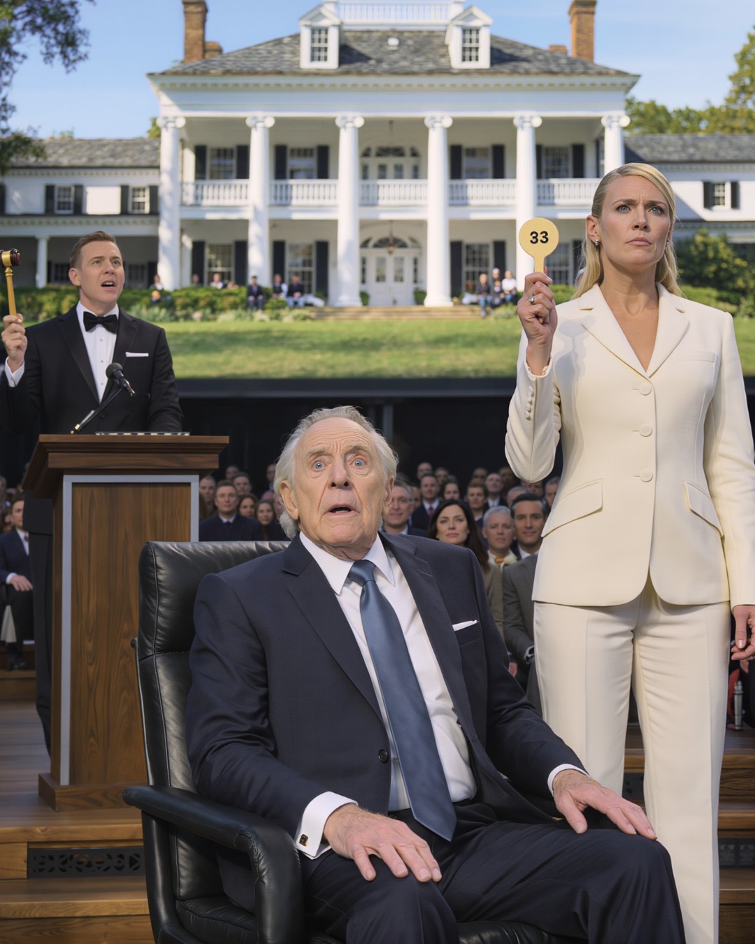 When they reached the main house and the surrounding land, the auctioneer cleared his throat. “This parcel includes the primary residence and immediate grounds. Opening bid…”